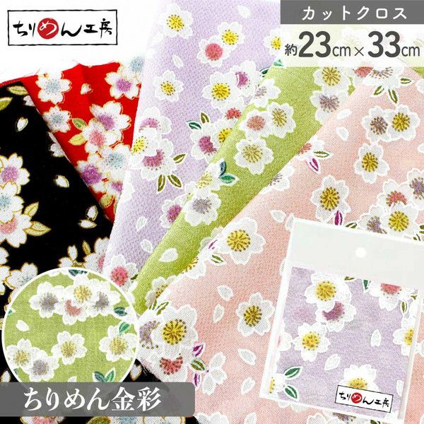 6. ちりめん 金彩 カットクロス 約23×33cm 桜とつぼみ 和手芸 ちりめん細工 カットクロス はぎれ 和柄 ちりめん生地 小物 手縫い レーヨン100% 和柄生地 手芸・和小物材料