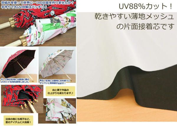 紫外線対策!UVカット生地88%カット!1910P-UV-10cm UVケア 傘 帽子用UV接着芯 【最低単位50~10cm単位の切り売り】 | 手芸材料のネットショップ つくる楽しみ.com