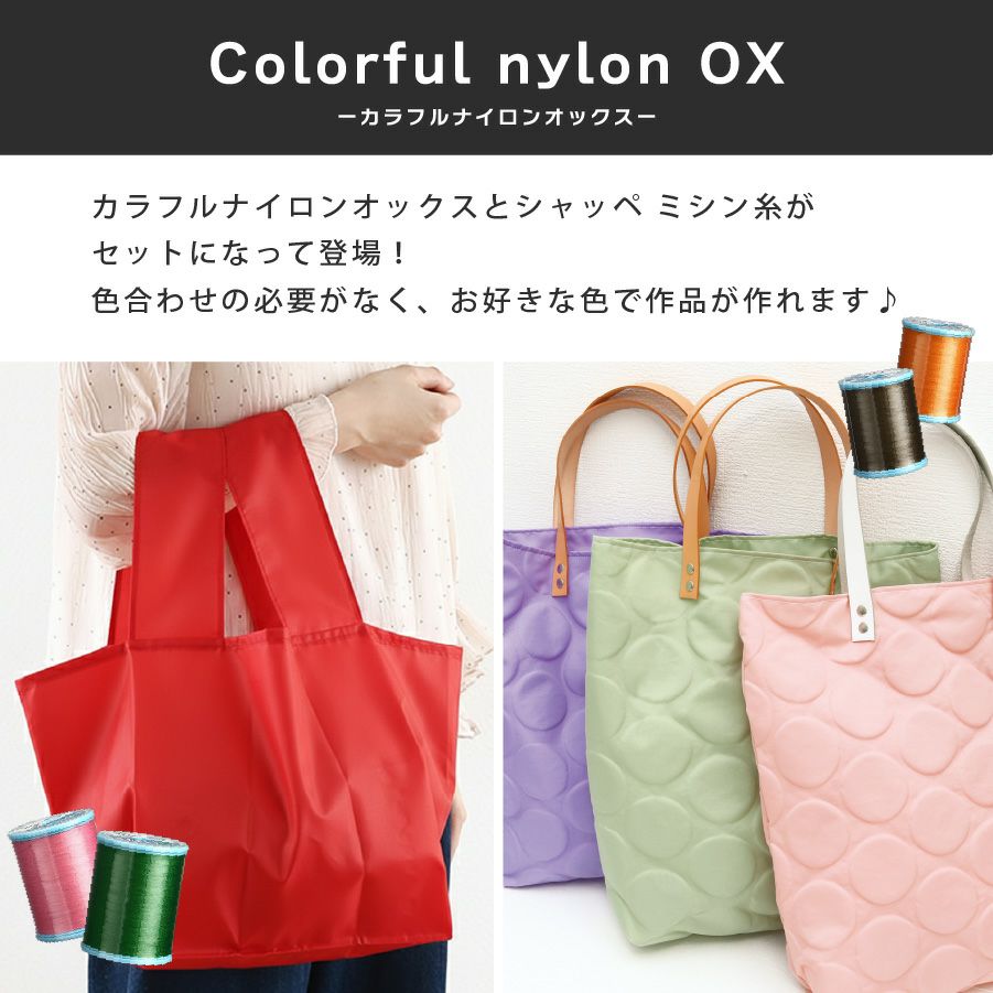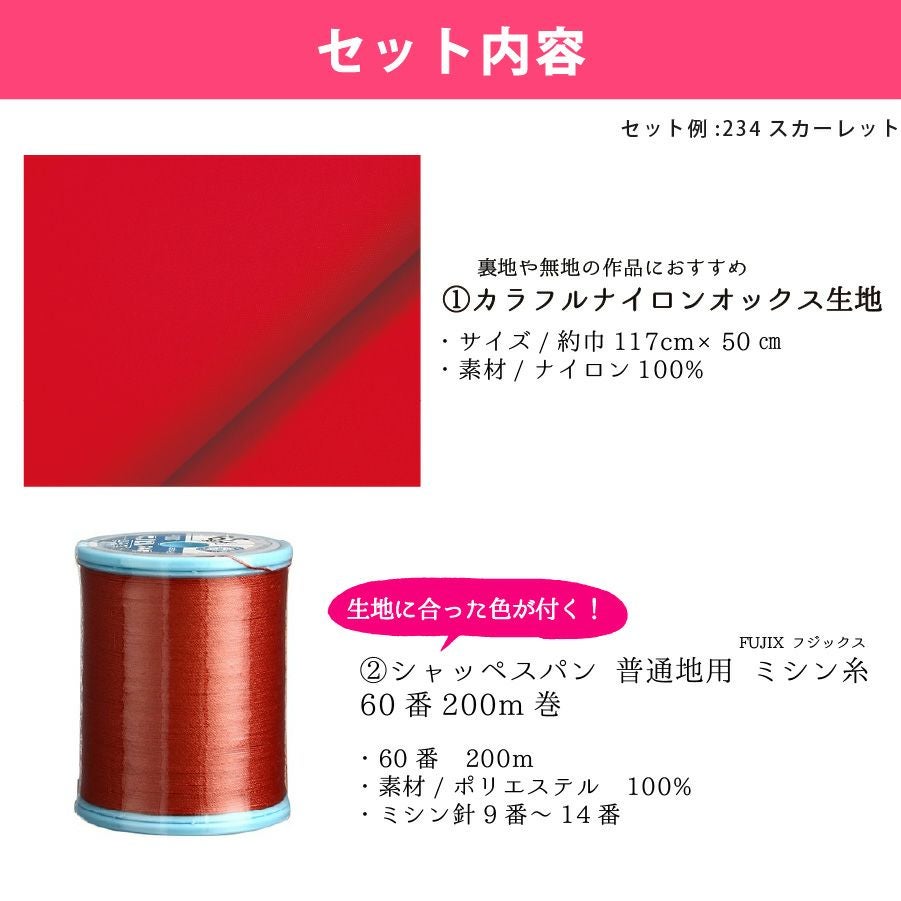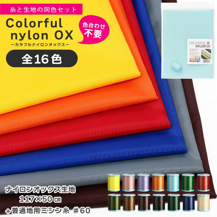 他の画像を見る TS210-50CUT カラフル ナイロンオックス生地 117×50cm + ミシン糸のセット 全17色 普通地用ミシン糸 60番 200m 撥水生地 ナイロン OX カラフル ¥ 660 税込 お気に入りに登録する