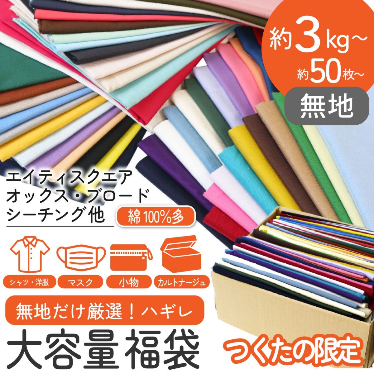 他の画像を見る TU-HAGIRE-A 無地 はぎれ 福袋 約3kg 50枚以上~! オックス スケア エイティスクエア シーチング ブロード 等 ランダム 無地布セット 手芸 パッチワーク 切り返し 生地 サイズ色々 ¥ 3,300 税込 品切中 お気に入りに登録する