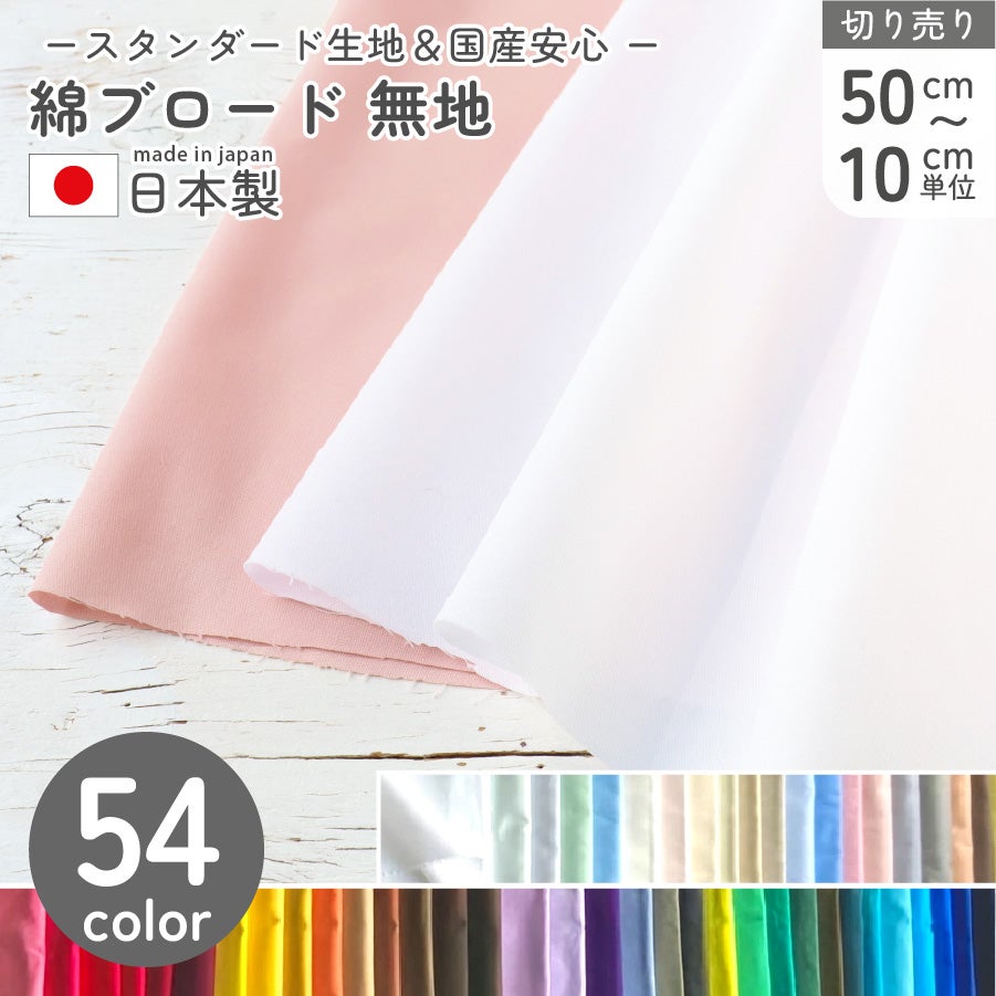 他の画像を見る B64500-ALL 生地 無地 綿ブロード コットンブロード 無地 日本製 112cm巾 コットン100% シャツ ブラウス マスク ハンドメイド 洋裁 小物 パッチワーク さらり やわらかい 高密度 扱いやすい 全54色展開 最低単位50cm~10cm単位の切売 ¥ 70 税込 お気に入りに登録する