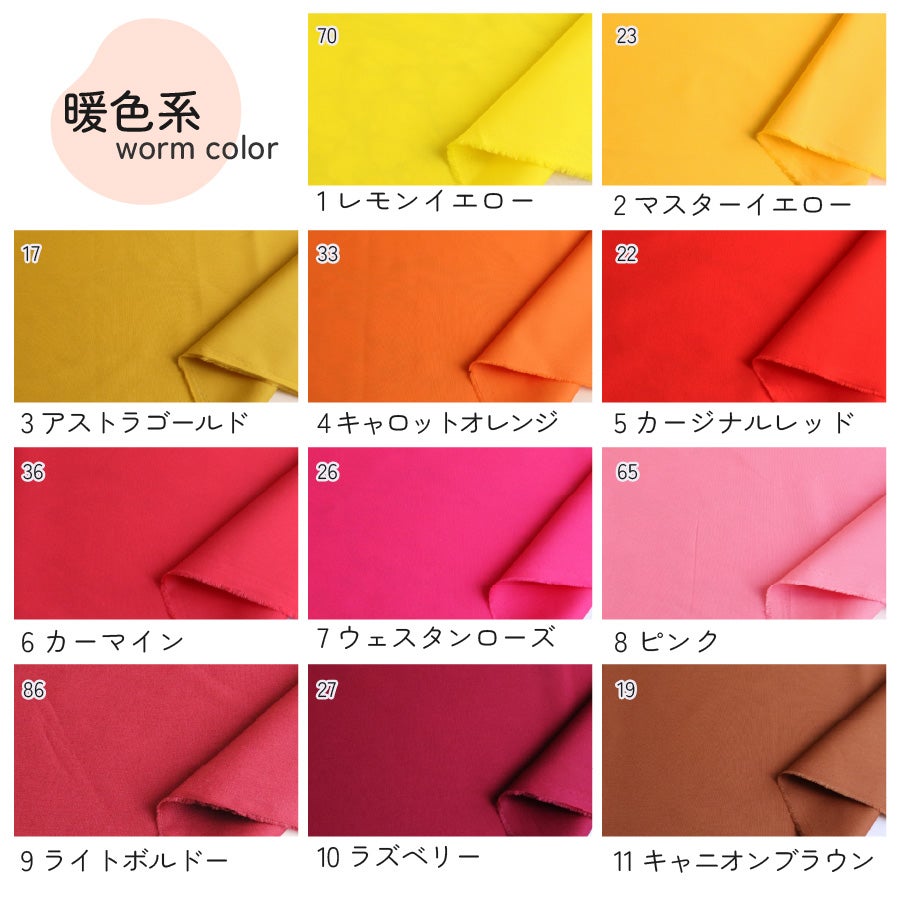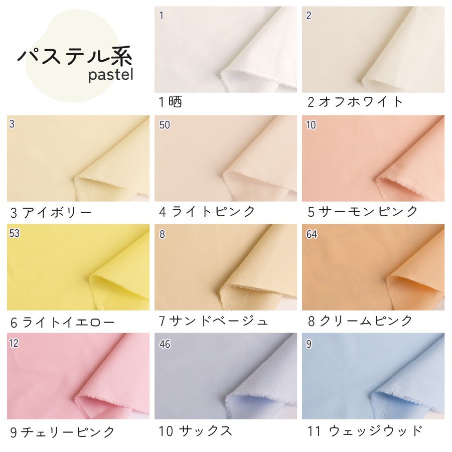 他の画像を見る 何にでも使える無地の生地【お盆期間セール】 生地 無地 オックス 布 国産 コットン 全30色 日本製 全30色 最低単位50cm~10cm単位の切売 普通地 扱いやすい ハンドメイド 手芸 ソーイング 手作り 洋裁 衣装 コスプレ 小物 洋服│つくる楽しみ スプリングカラー ¥ 83 税込 お気に入りに登録する