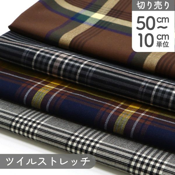 生地 チェック柄 ツイルストレッチ生地 (最低単位50cm~10cm単位の切り売り) | 手芸材料のネットショップ つくる楽しみ.com