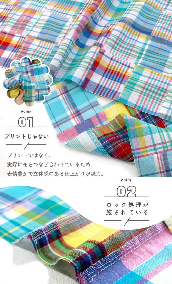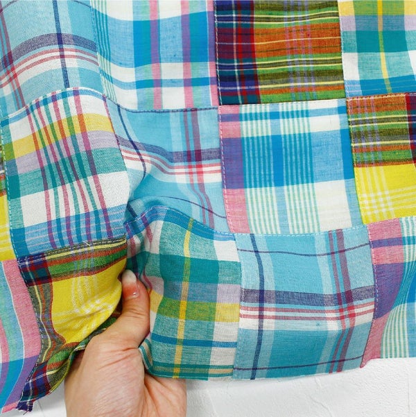 色とりどりのマドラスチェック柄を一枚ずつ丁寧に縫製。