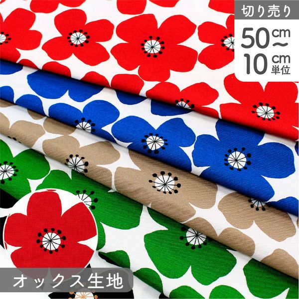 生地 オックス生地 オックスプリント 北欧風花柄 フラワーパターン 大 巾約110cm (最低単位50cm~10cm単位の切り売り) | 手芸材料のネットショップ つくる楽しみ.com