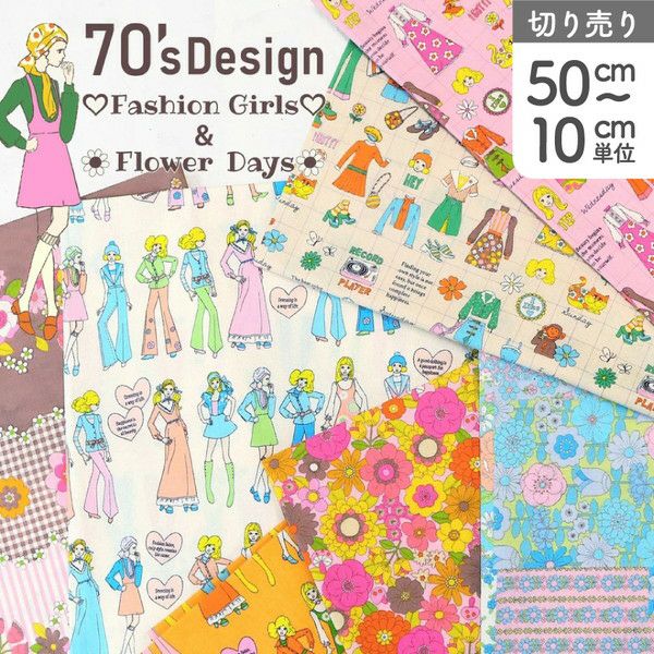 花柄 生地 レトロ プリント生地 70s Design flower Days | 手芸材料のネットショップ つくる楽しみ.com
