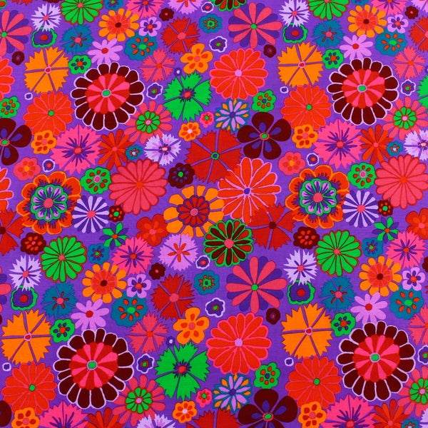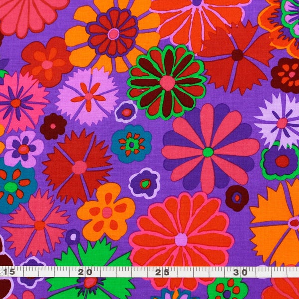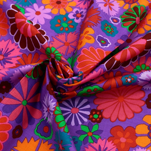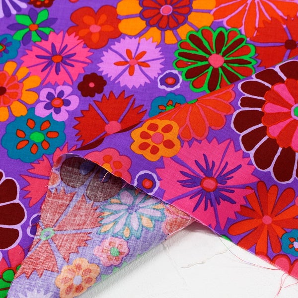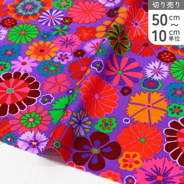 輸入生地 USAプリント生地 パープル地 カラフルフラワー レトロポップ USAプリント生地 Kaffe Fassett ケイフ・ファセット FreeSpirit フリースピリット 巾約110cm 最低単位50cm~10cm単位の切売 | 手芸材料のネットショップ つくる楽しみ.com