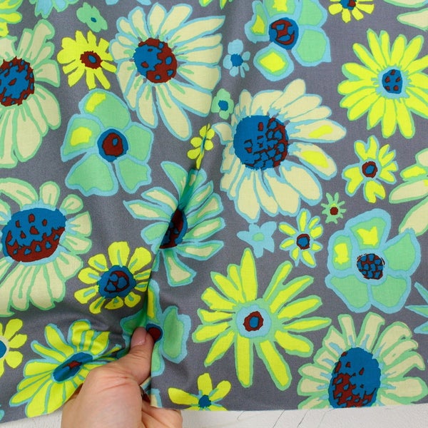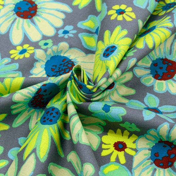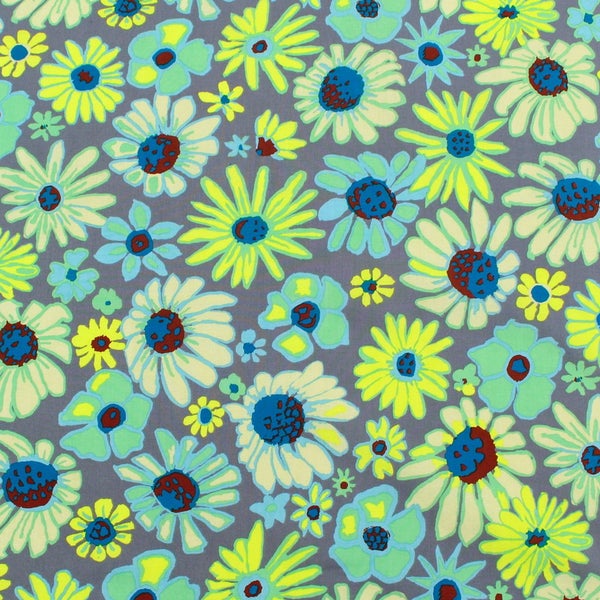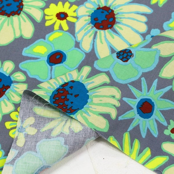 FSP-947 輸入生地 USAプリント生地 グレー地 水色黄色 くすみフラワー ナチュラルポップ USAプリント生地 Kaffe Fassett ケイフ・ファセット FreeSpirit フリースピリット 巾約110cm 最低単位50cm~10cm単位の切売