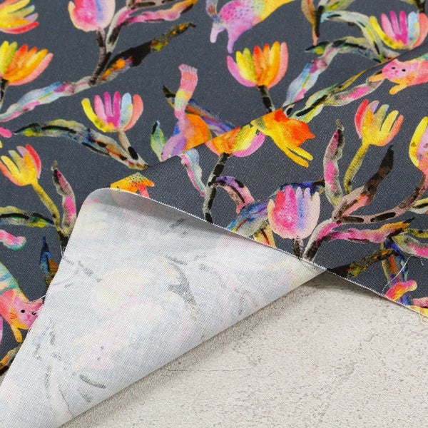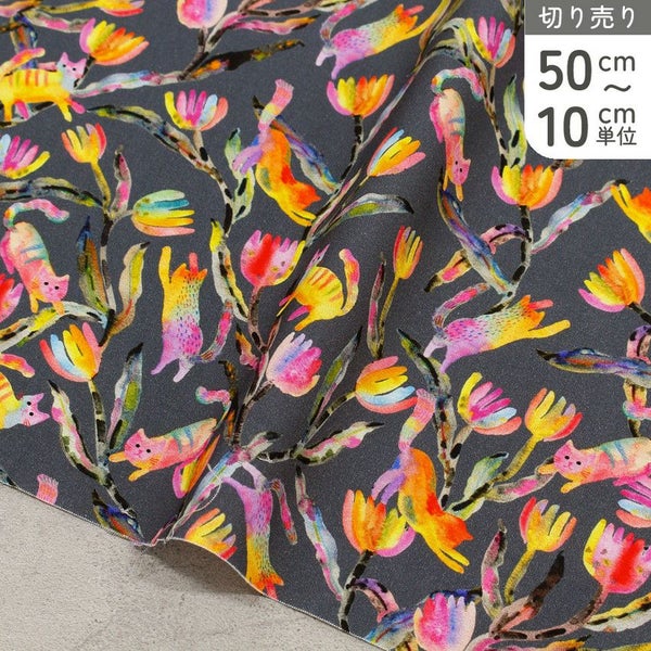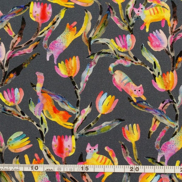 輸入生地 生地 インポート カラフル植物とネコ ROBERT KAUFMAN ロバートカフマン USAプリント 巾約110cm インテリア 正規輸入品 珍しい柄 バッグ最低単位50cm~10cm単位の切売 | 手芸材料のネットショップ つくる楽しみ.com