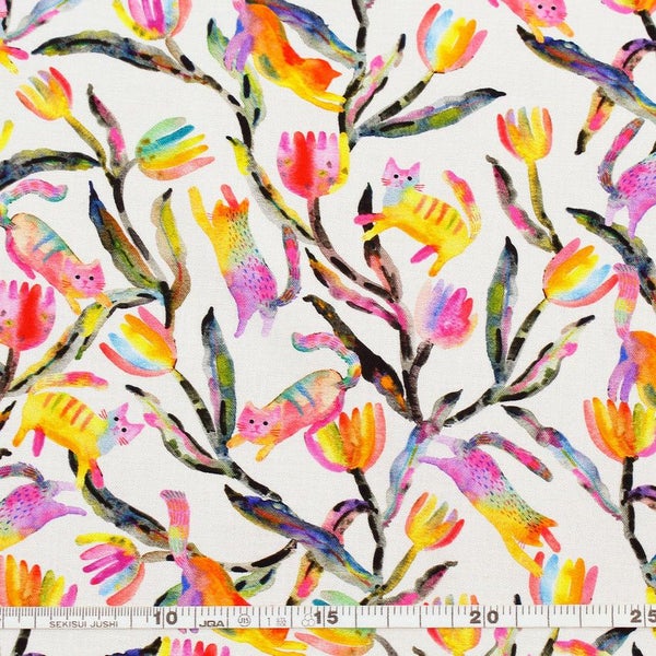 輸入生地 生地 インポート カラフル植物とネコ ROBERT KAUFMAN ロバートカフマン USAプリント 巾約110cm インテリア 正規輸入品 珍しい柄 バッグ最低単位50cm~10cm単位の切売 | 手芸材料のネットショップ つくる楽しみ.com