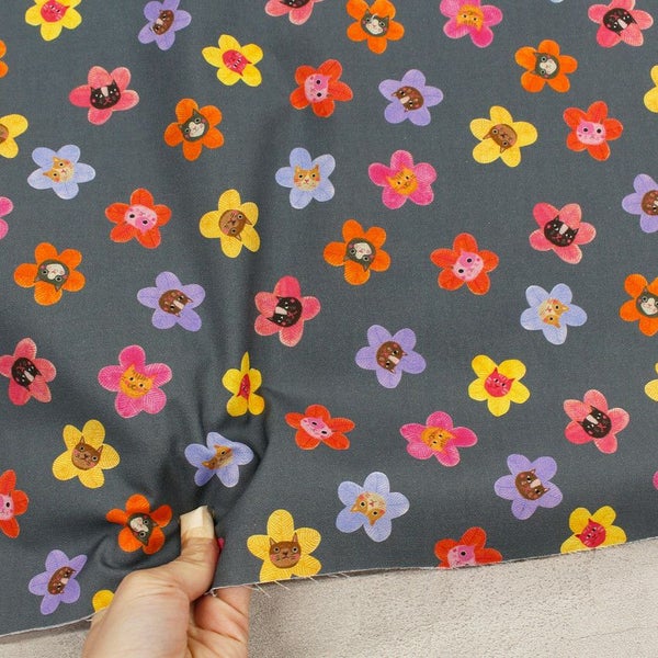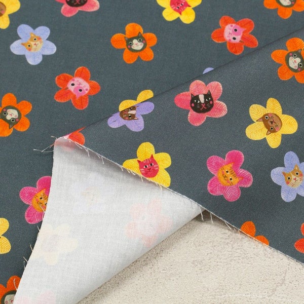 輸入生地 生地 インポート ネコの花 ROBERT KAUFMAN ロバートカフマン USAプリント 巾約110cm インテリア 正規輸入品 珍しい柄 バッグ最低単位50cm~10cm単位の切売 | 手芸材料のネットショップ つくる楽しみ.com