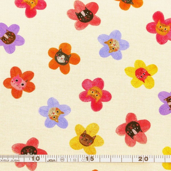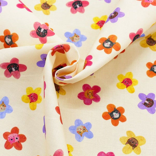 輸入生地 生地 インポート クリーム地 ネコの花 ROBERT KAUFMAN ロバートカフマン USAプリント 巾約110cm インテリア 正規輸入品 珍しい柄 バッグ最低単位50cm~10cm単位の切売 | 手芸材料のネットショップ つくる楽しみ.com