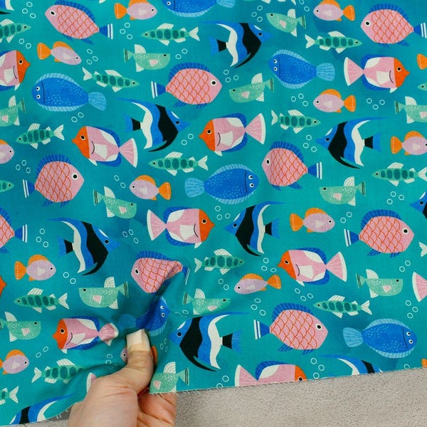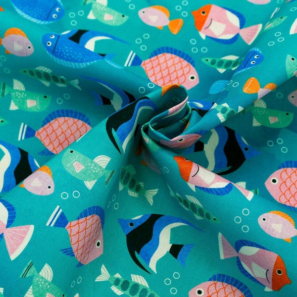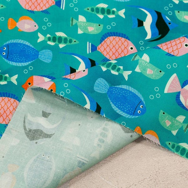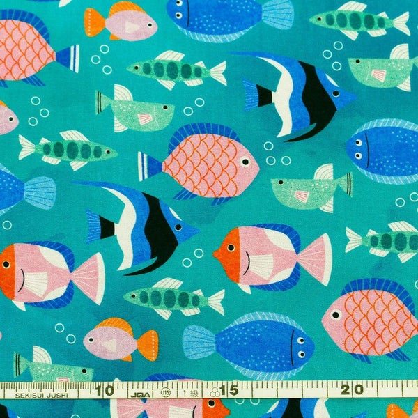 輸入生地 生地 インポート エメラルド さかな柄 ROBERT KAUFMAN ロバートカフマン USAプリント 巾約110cm インテリア 正規輸入品 珍しい柄 バッグ最低単位50cm~10cm単位の切売 | 手芸材料のネットショップ つくる楽しみ.com