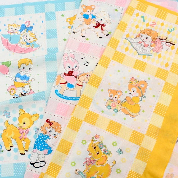 生地 プリント生地 Happy message 30’S 巾約108cm×1m パネル柄 約108cm×100cm単位の切り売り レトロ パッチワーク 入園入学 かわいい 布 カット | 手芸材料のネットショップ つくる楽しみ.com