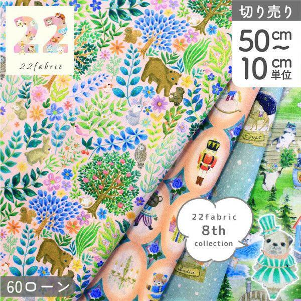生地 22fabric 60ローン ユキエモン 薄手 猫 ねこ ニャンニャンファブリック 松浦由起江さん デザイン デジタルプリント 8th collection | 手芸材料のネットショップ つくる楽しみ.com