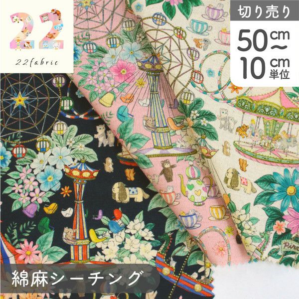 生地 yukiemon 綿麻シーチング ゆきえもん ユキエモン 猫 ねこ ニャンニャンファブリック 松浦由起江さん デザイン 22fabric | 手芸材料のネットショップ つくる楽しみ.com