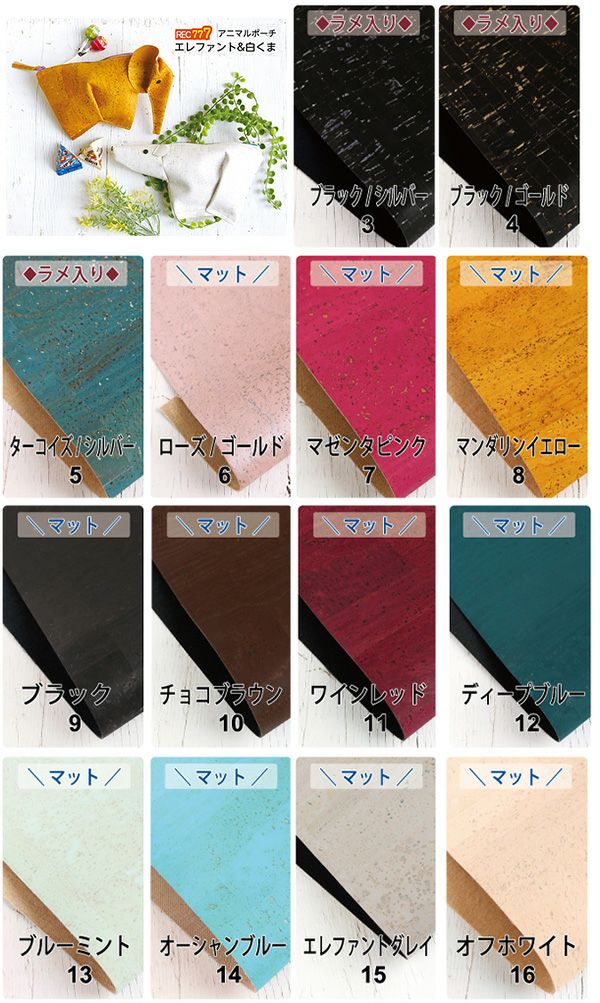 ■素材 表:コルク100%、裏:ポリウレタン55%、綿29.5%、ポリエステル15.5%