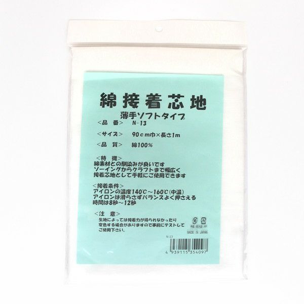 接着芯 薄手 綿100%接着芯 ソフトタイプ 約110cm巾×長さ1m アイロン接着芯 バッグ ソーイング コットン | 手芸材料のネットショップ つくる楽しみ.com