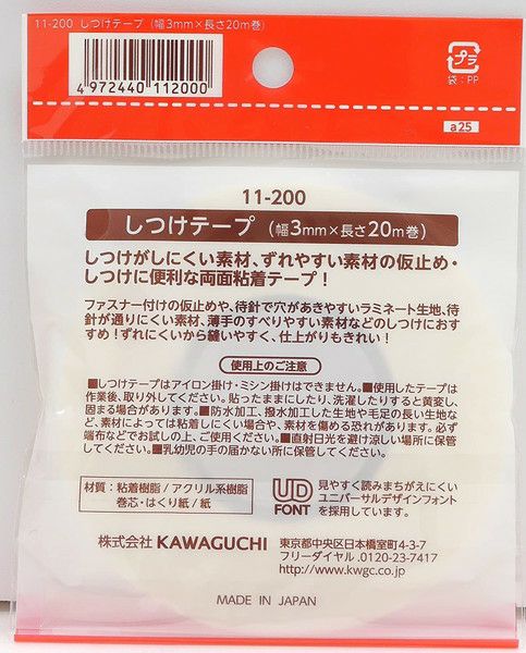KAWAGUCHI しつけテープ 3mm幅×20m巻 11-200