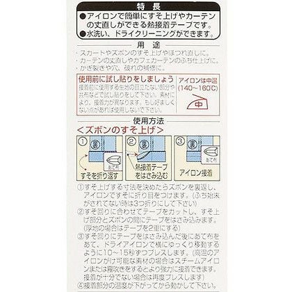 アイロンで簡単にすそ上げやカーテンの丈直しができる熱接着テープです。