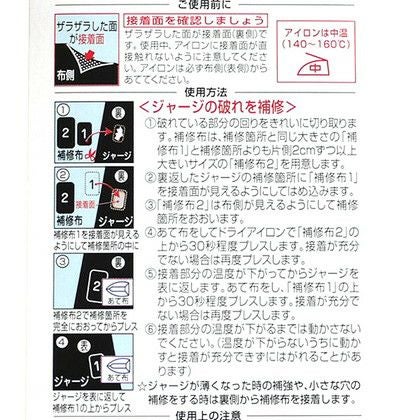 ジャージ布製品の補修や補強に便利なアイロン接着の補修布。