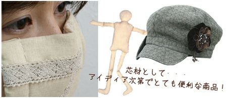 マスクの鼻あて、帽子のプリムの形をつくる芯材