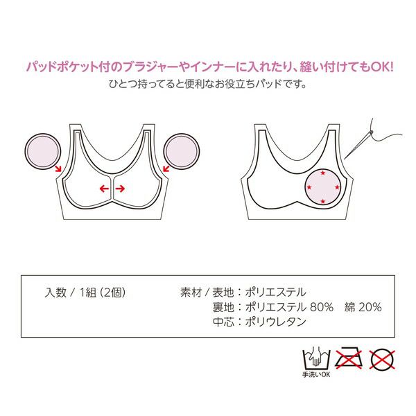 パッドポケット付きのブラジャーやインナーに入れたり、縫い付けてもOK!