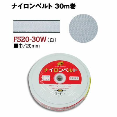 インサイドベルト芯(ナイロンベルト芯)縫い付けタイプ 巾20mm×30m巻 白