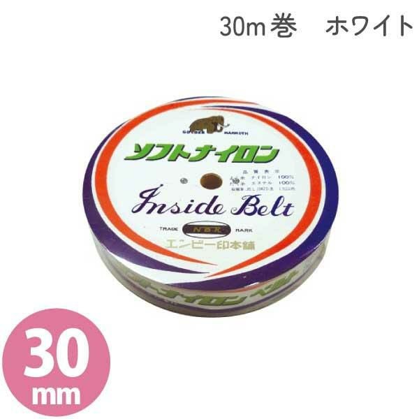 日本紐釦貿易 ソフトインベル ベルト芯 巾30mm×30m巻 白 MF88-30W
