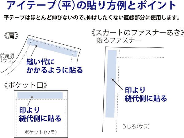 アイテープ 平 黒 巾9mm×25m ほどんど伸びない 肩などの直線部分向き ブルー 伸び止めテープ