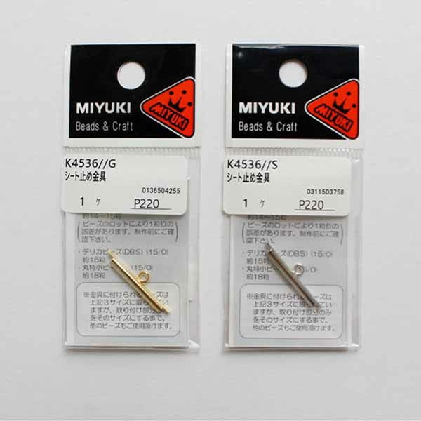 ビーズステッチ、ビーズ織り等で作ったリボン状のシートを留めて作るストラップ、アクセサリー用の金具です。
