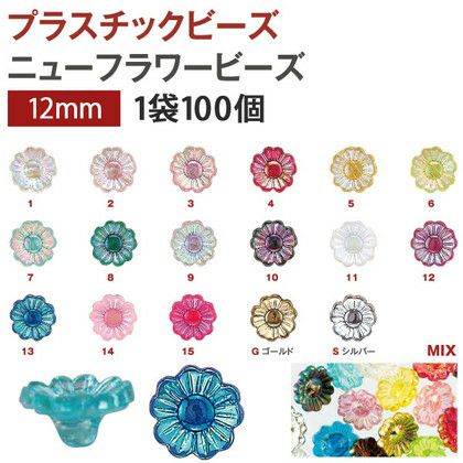 プラスチック ビーズ ニューフラワービーズ 12mmDX 100個入| つくる楽しみ