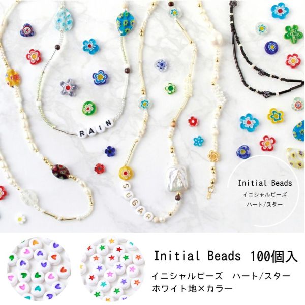 イニシャルビーズ ハート スター ホワイト×カラー ビーズ アクリルビーズ イニシャルビーズ 星 ミルフィオリビーズ | 手芸材料のネットショップ つくる楽しみ.com