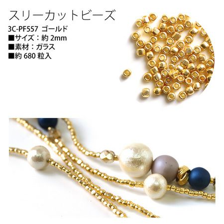スリーカットビーズ ゴールド 2mm 約680粒