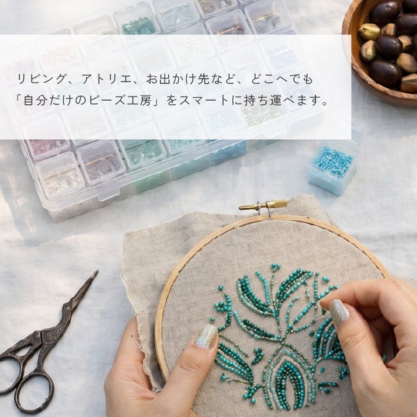 リビングやアトリエ、お出かけ先など、どこへでも持ち運びやすく、自分だけのビーズ工房をスマートに楽しめるのも魅力です。