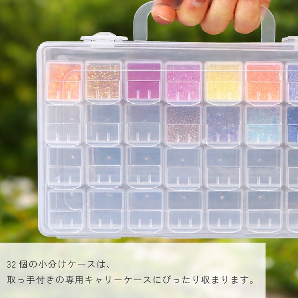 32個の小分けケースが専用キャリーケースにすっきり収まり、使いたい色をさっと取り出せます。
