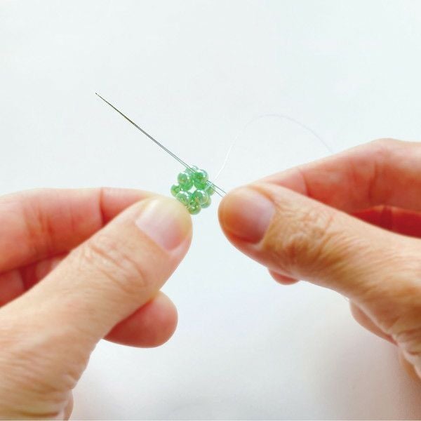 小粒のビーズも通しやすく、テグスも通しやすくなっています。