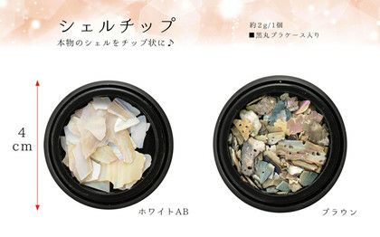 ■入り数:約2g/1個 ■2色セット ■黒色プラケース入り 本物のシェルをチップ状に♪