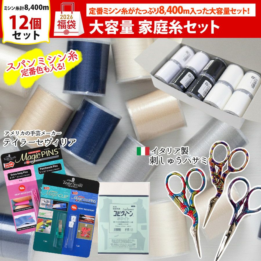 他の画像を見る FUK25W-201 福袋 2026年 手芸 大容量 家庭糸セット ミシン糸 定番 10個 + 人気色 2個 +手芸用品 たくさん 山盛り 縫製糸 手縫い 補修用 常備糸 カラー糸 洋裁資材 ¥ 3,080 税込 販売期間 2025/12/09 12:00 〜 2026/01/15 17:00 お気に入りに登録する