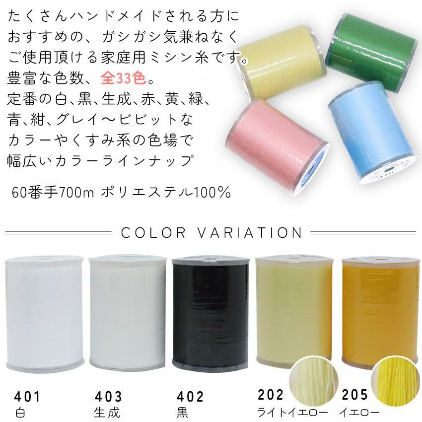 ミシン糸 60番700m スパンミシン糸 全33色 色物 (色番号 100~300番台) | 手芸材料のネットショップ つくる楽しみ.com