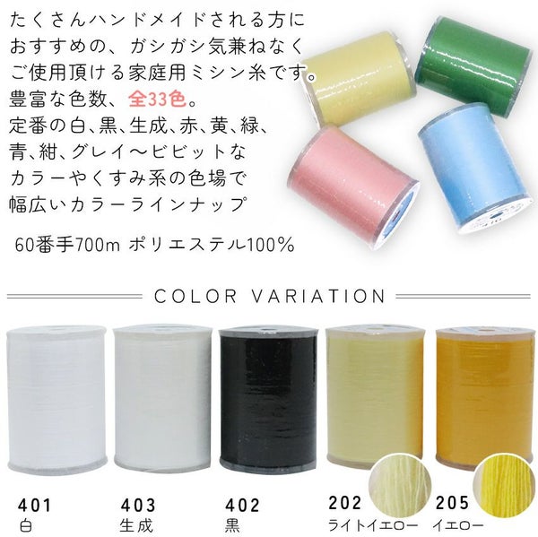 たくさんハンドメイドされる方におすすめの、ガシガシ気兼ねなくご使用いただける家庭用ミシン糸です。