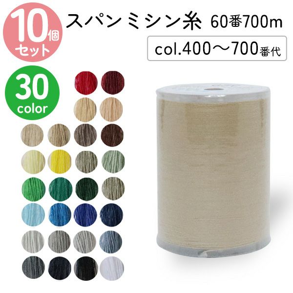 - (まとめ買い同色10個) ミシン糸 60番700m スパンミシン糸 白 黒 生成 色物 (色番号 400~700番台) 全33色