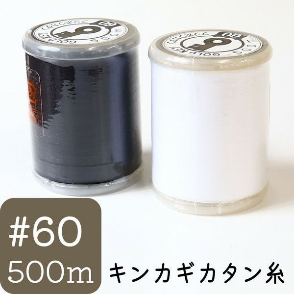 フジボウ キンカギカタン糸 500m巻 #60 黒 白 家庭用カタン糸