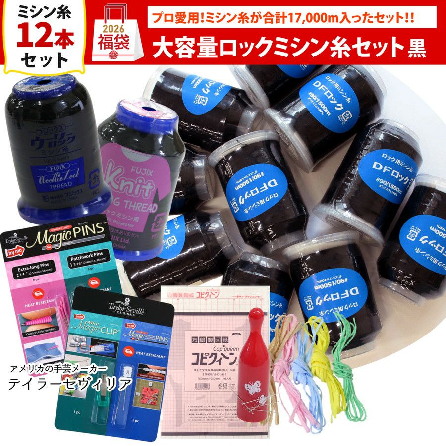 他の画像を見る FUK25W-202 福袋 2026年 手芸 大容量 ロックミシン糸セット 黒 ミシン糸 ロックミシン糸 定番色 +手芸用品 工業用縫製 強度重視 安定縫い プロ仕様 工房 黒糸 ベーシック縫製 量産対応 作業用 ¥ 2,750 税込 販売期間 2025/12/09 12:00 〜 2026/01/15 17:00 お気に入りに登録する