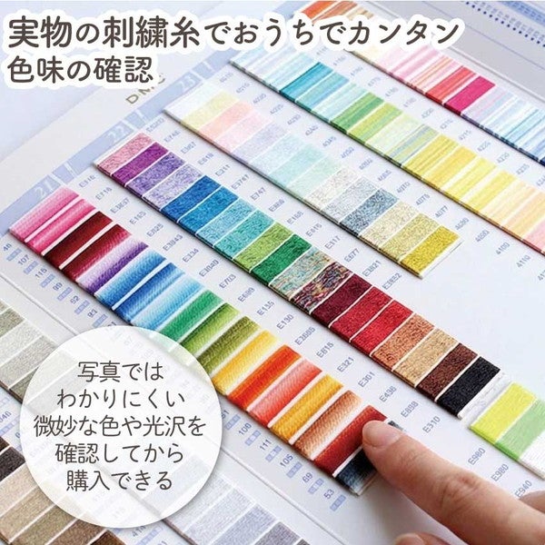 実物の刺しゅう糸がカラー別にきれいに配置された見本帳です。