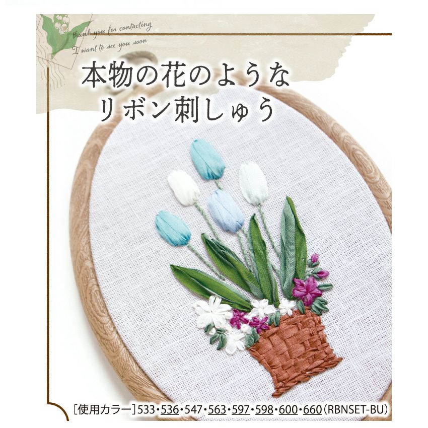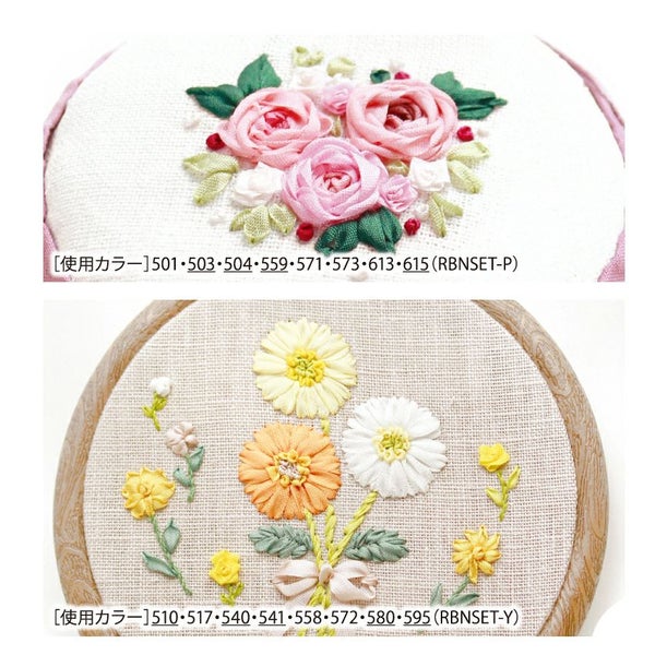 糸の刺しゅうと違いリボンには幅があるので扱い方が異なりますが、1本のリボンが刺しゅうによって様々な形になるのはとても魅力的です。
