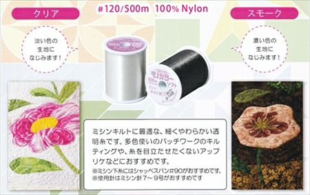 ミシンキルトに最適な、細く柔らかい透明糸です。
