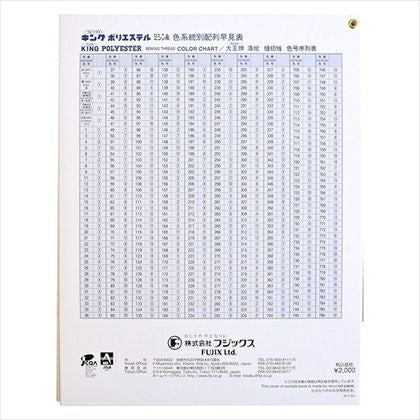 FUJIX(フジックス)のミシン糸「キングポリエステル」が411色載った、1冊あると便利な見本帳です。