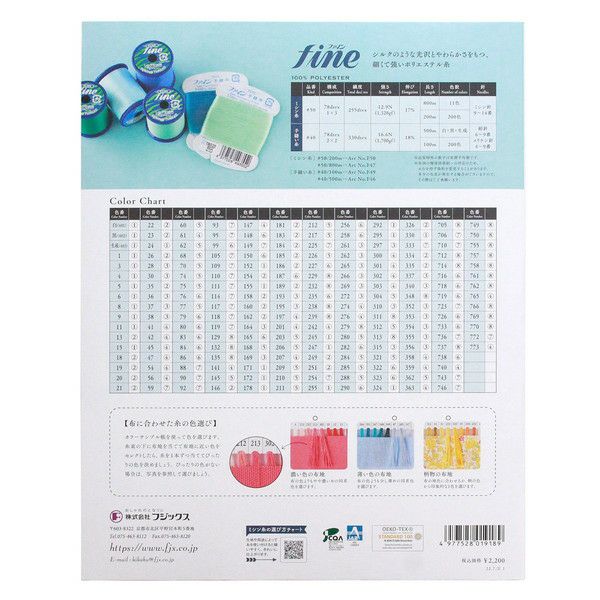 FUJIX(フジックス)のミシン糸・手縫い糸「ファイン」が200色載った、1冊あると便利な見本帳です。