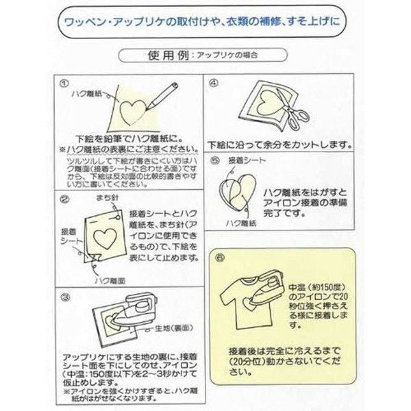アイロンの熱で接着する両面接着シート。ドライクリーニングも可能。ワッペン作りなどに最適。